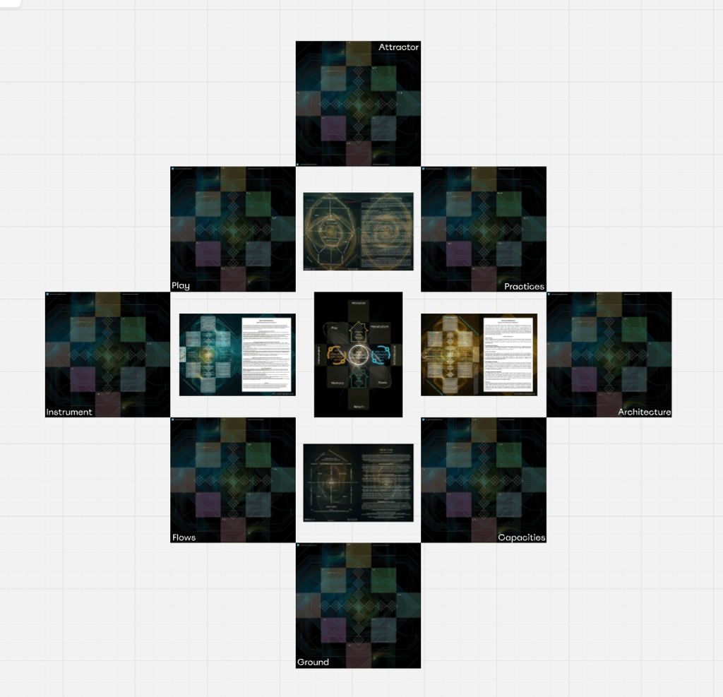 What previously had to be carried within is externalized into architecture that stores surplus coherence and routes creative flow through a singular site of return.